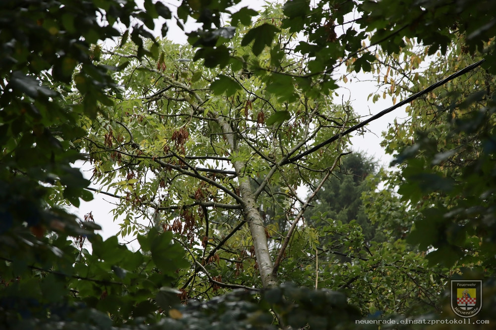 Ein Baum stürzte auf eine Oberleitung. Da es sich zum einen um ein Privatgrundstück handelte, zum anderen für die Öffentlichkeit keine Gefahr ausging, wurden unsere Kräfte nicht tätig und informierten den Grundstückseigentümer.